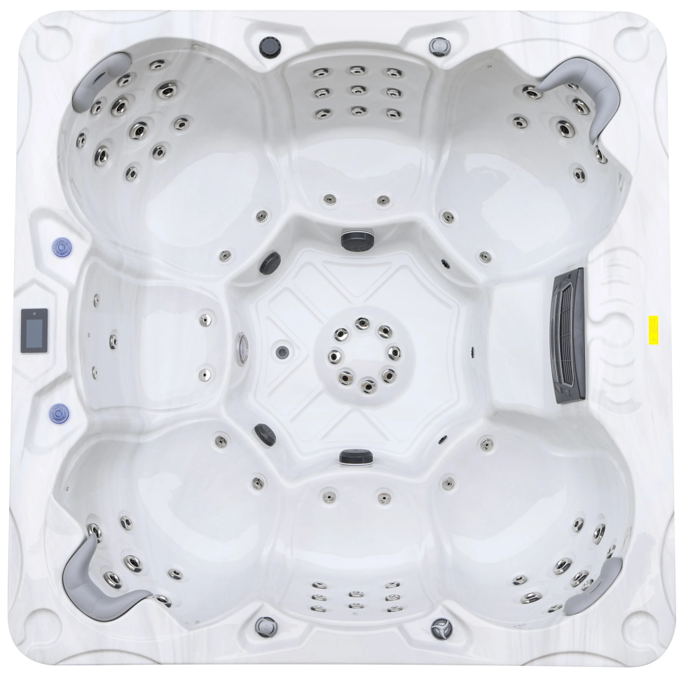 NordicSpa Khild с размером чаши 2,25 x 2,25 м идеально подходит для установки как в помещении, так и на улице. Самая просторная квадратная чаша в линейке с четырьмя эргономичными подголовниками комфортно вмещает до семи человек, создавая королевские условия для полноценного отдыха и общения.