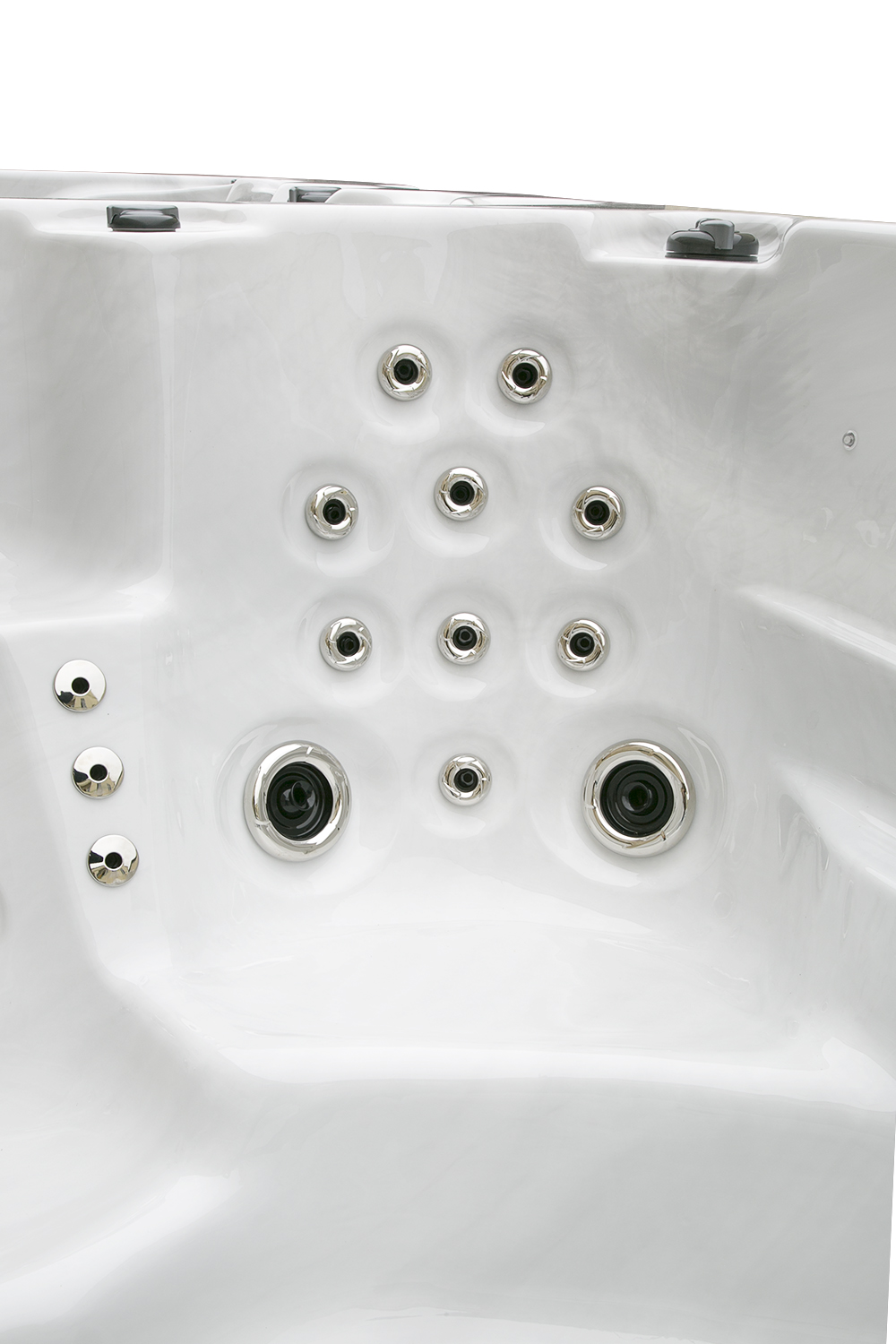 Два гидромассажных насоса по 1,5 кВт в сочетании с 76 форсунками обеспечивают интенсивный массаж и эффективную гидродинамику в спа-зоне. Мощный водяной насос на 2,9 кВт и форсунки противотока нового поколения создают идеальные условия для занятий плаванием и тренировок на воде в основной части бассейна.